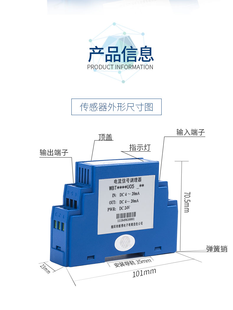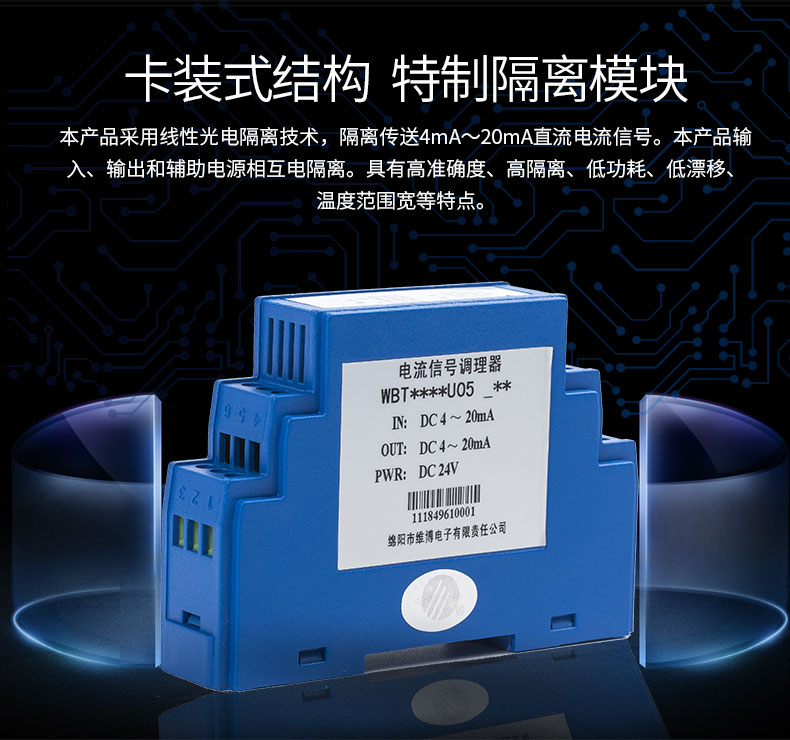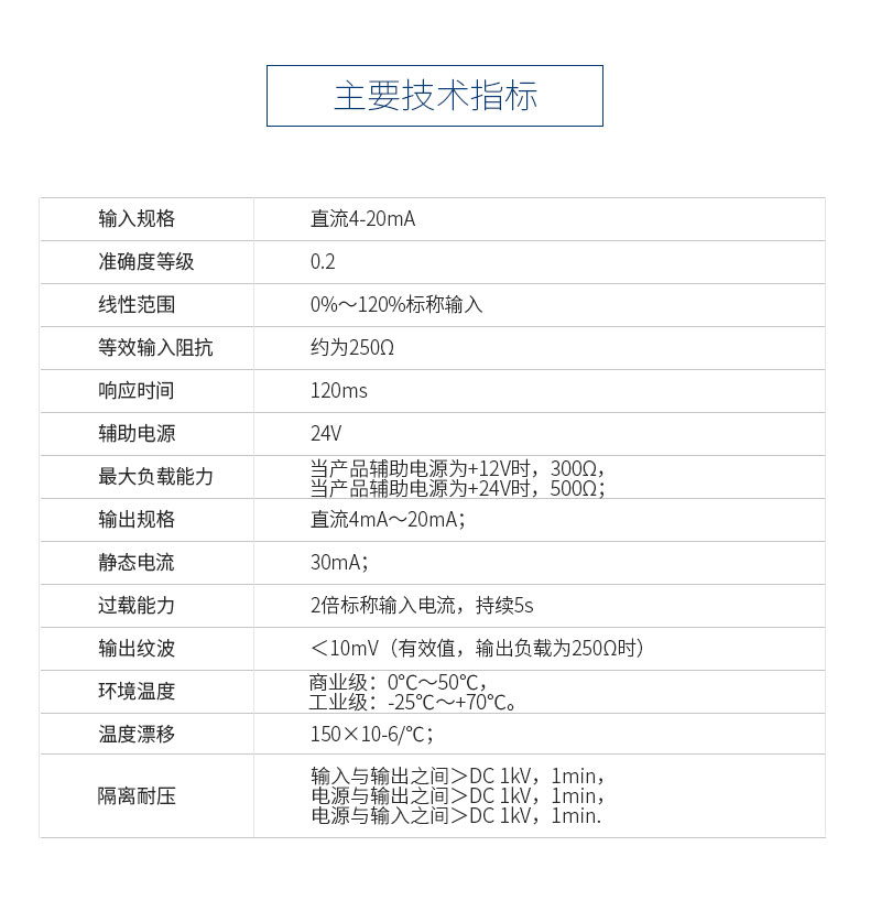 本產(chǎn)品采用線性光電隔離技術(shù),隔離傳送4mA~20mA直流電流信號。本產(chǎn)品輸路輸出和輔助電源相互電隔離,具有高準(zhǔn)確度、高隔離、低功耗、低漂移溫度范圍寬等特點(diǎn)。